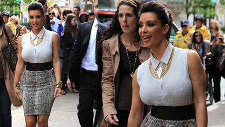 KIM KARDASHIAN (31) chętnie eksponuje swój imponujący biust. Jednak nie każdy sposób wart jest polecenia. Duże piersi wymagają dobrze dobranego stanika. Za mały (jak na zdjęciu) nigdy nie utrzyma biustu na właściwym miejscu, a obcisła bluzka bezlitośnie ten błąd ujawni. Z kolei mały, okrągły dekolt sprawia, że kobiece atrybuty wyglądają monstrualnie. Więcej luzu (w fasonie!) da lepszy efekt.