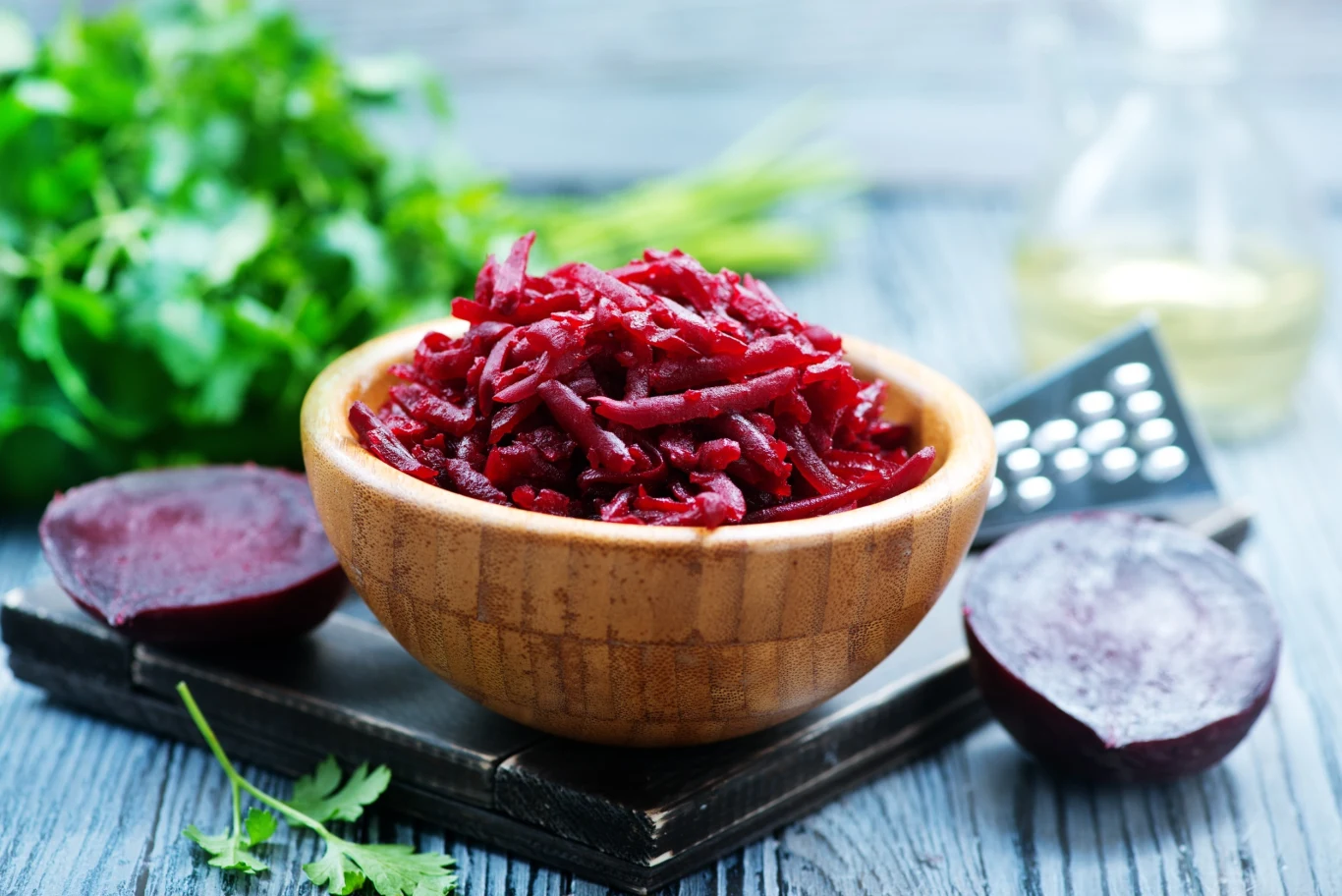 - Buraki obieramy, wkładamy do garnka, zalewamy wodą i gotujemy przez ok. 30-35 minut. Po tym czasie wyciągamy je na czysty talerz, pozostawiamy do wystudzenia i również ścieramy na tarce.