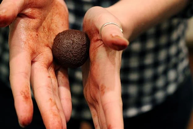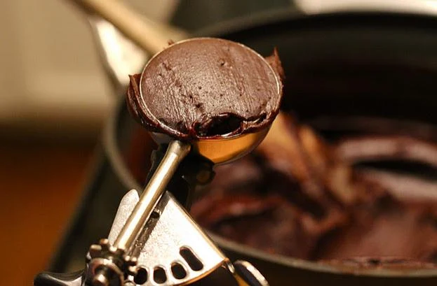 Nabierz czekoladę łyżką w formując kupki. Najlepiej do tego posłuży łyżka do lodów. Staraj się formować kule. Odstaw kule na godzinę do lodówki.