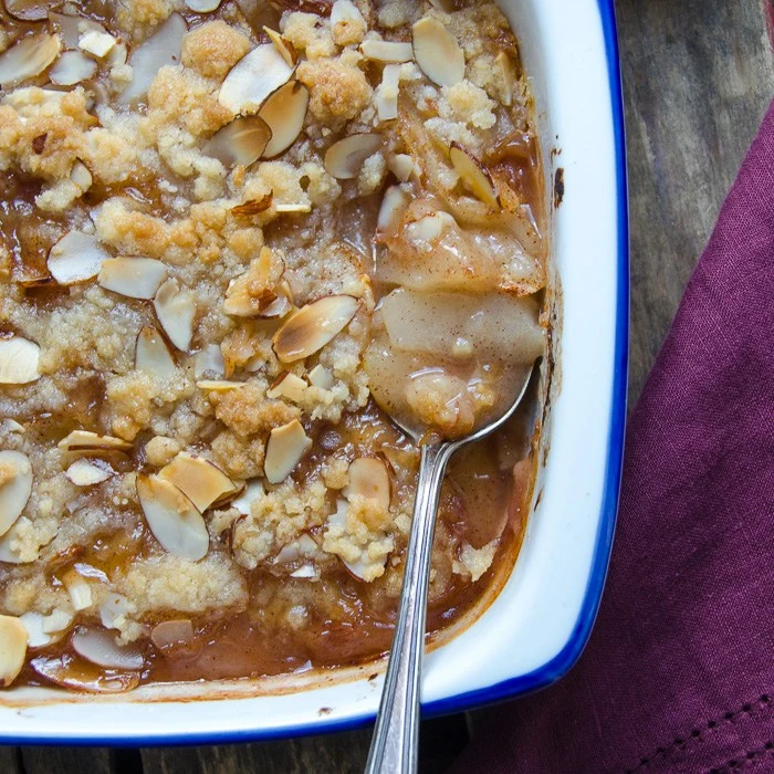 Na chłodne i zimne wieczory, rozgrzewający imbir. I właśnie od jest tutaj kluczem podkreślającym smak tego deseru. Kandyzowany imbir wydobywa jeszcze więcej smaku gruszki, staje się on bardziej wyrazistszy. To idealne połączenie cukru, mąki, migdałów i odrobiny mielonego imbiru. Będziesz chciała zakosztować każdego kęsa jeszcze raz.
