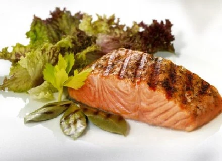 Łososia grillować na aluminiowej tacce. Podczas grillowania nakładać na rybę resztę marynaty. Łososia podawać ze świeżo startym chrzanem, świeżo wyciskanym sokiem z jabłek i odrobiną cynamonu.