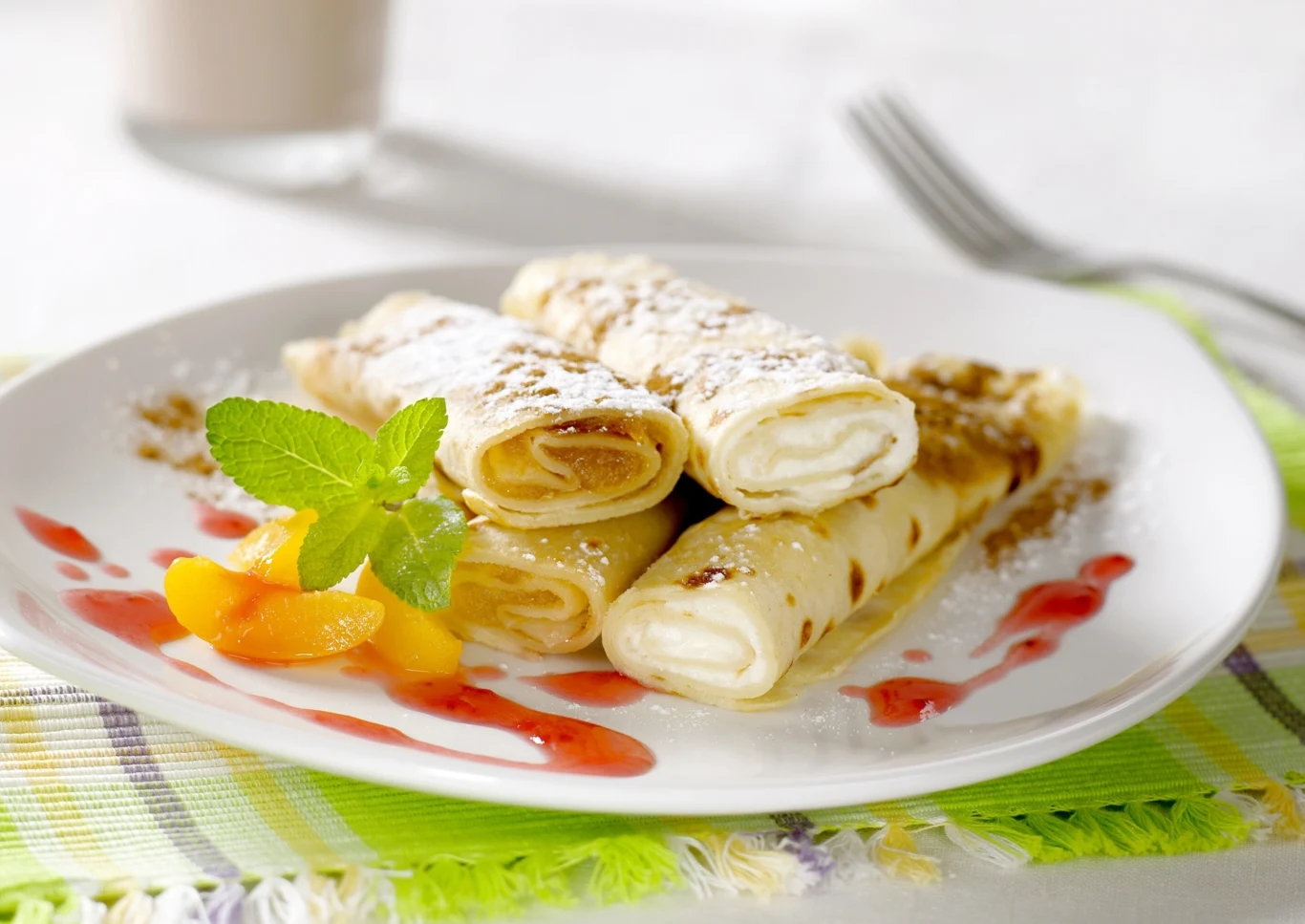Naleśniki na słodko mogą być podawane nie tylko na deser, ale jako danie główne. Te z twarogiem i surowym żółtkiem są bardzo delikatne i dosłownie rozpływają się w ustach.