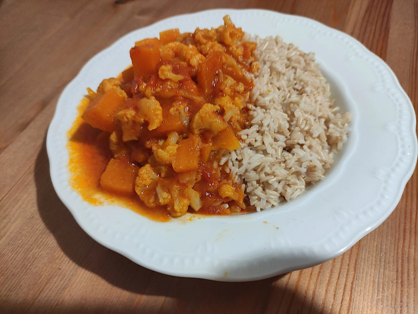 Curry z kalafiora można podawać z naszym polskim chlebem, a jeśli chcemy zaserwować danie w bardziej azjatyckim stylu, sprawdzą się chlebki naan lub ryż (dla mnie najlepiej smakuje z brązowym lub jaśminowym).