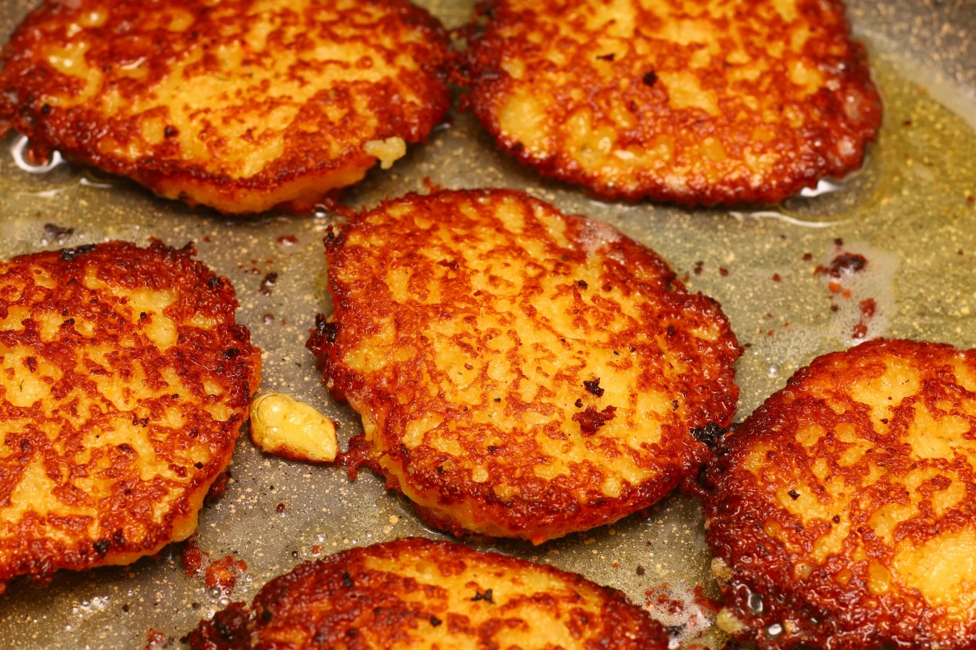 - Na patelni rozgrzej olej i smaż placki z każdej strony na złoty kolor.