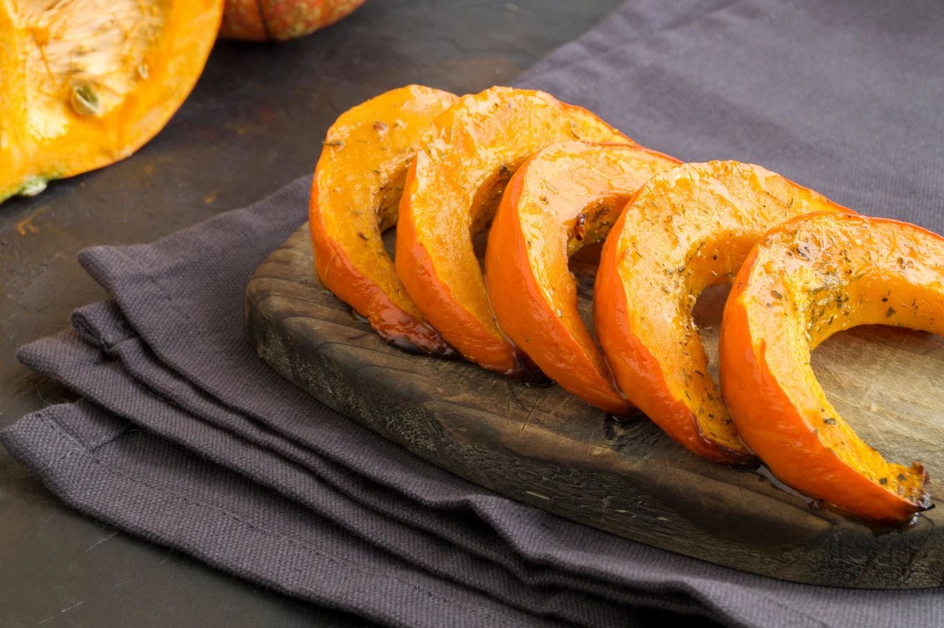 3. Piecz przez około 20-25 minut, aż dynia będzie miękka i lekko zarumieniona.