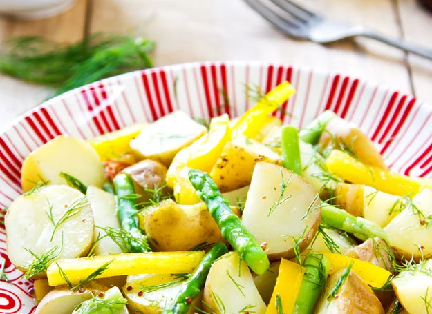 Zielone szparagi i młode ziemniaki, z tych dwóch składników wyczarujesz pyszną wiosenną sałatkę.