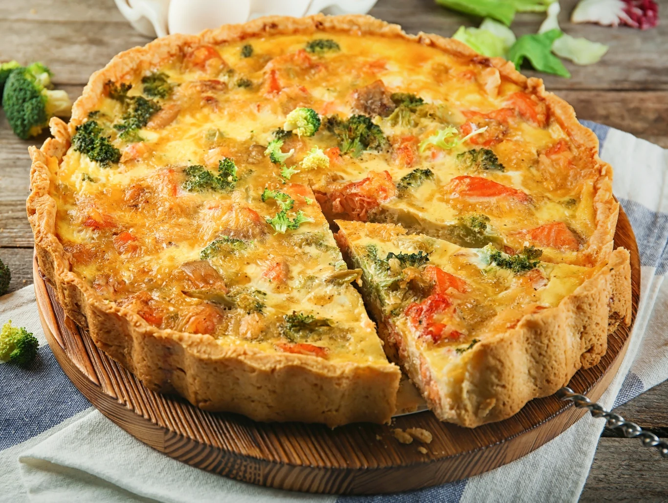 Tarta z brokułem i suszonymi pomidorami łączy ze sobą dwa kuchenne porządki. Kusi elegancją francuskiej kuchni, skąd się wywodzi, a znika z łatwością włoskiej pizzy. Z dodatkiem warzyw świetnie sprawdzi się na każdym stole. Tarta z brokułem i suszonymi pomidorami to doskonały wybór, gdy szukamy pysznego dania, które zachwyci naszych gości.