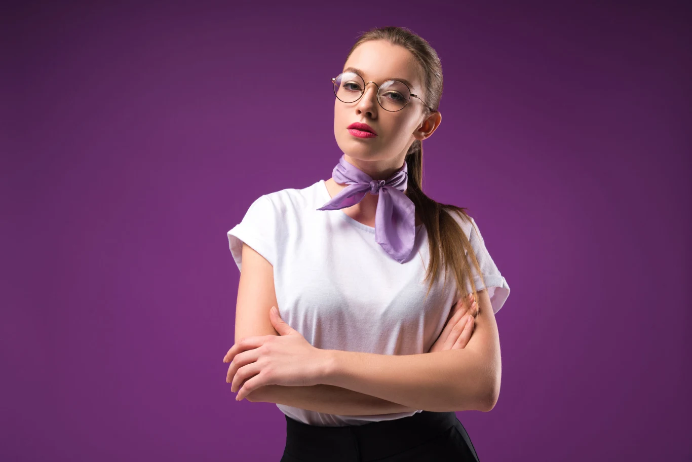 - Retro kokarda - kobiecość w stylu lat 50. Jeśli lubisz vintage, ten sposób jest dla ciebie. Apaszkę składamy w pasek, przewiązujemy wokół szyi i wiążemy w kokardę na boku. Świetnie komponuje się z rozkloszowanymi sukienkami i czerwonymi ustami, tworząc stylizację rodem z Hollywood lat 50.