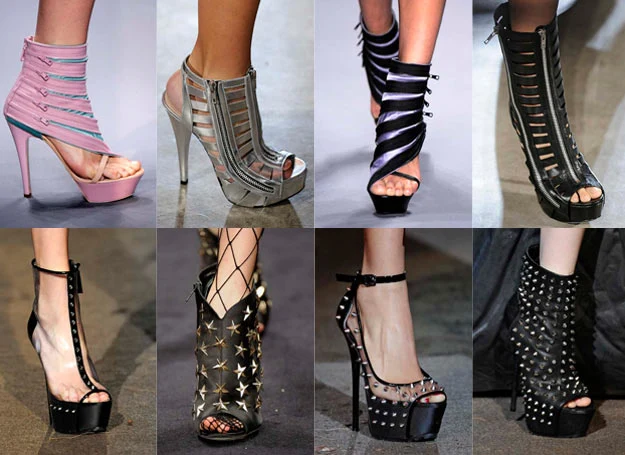 Odsłonięte palce i koturny, plecionki i piórka, ale też zamki błyskawiczne i ćwieki - tej wiosny najmodniejsze buty będą łączyć w sobie elementy retro z futurystycznymi akcentami.
