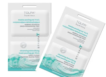 Linia preparatów Tołpa huminea Strefa T została poszerzona o nowy produkt Maska-peeling-żel 4w1 oczyszczająco-detoksykująca 2x6ml. ( Cena detaliczna: 6,99z)