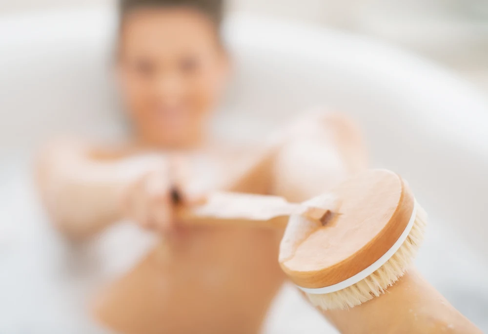 Szczotkowanie suchej skóry to znana praktyka. Metoda ta powszechnie stosowana w medycynie Ajurwedyjskiej służy wspomaganiu przepływu limfy i pobudzaniu krążenia. Wystarczy wziąć suchy pędzel z grubej szczeciny i “myć” skórę w kierunku serca. To stymuluje gruczoły potowe, otwiera pory i umożliwia pozbycie się martwych komórek skóry. Zwiększa również przepływ limfy i krwi do narządów i tkanek organizmu, co pomaga oczyścić go z toksyn. W rezultacie metoda ta, może być korzystna dla poprawy stanu skóry i redukcji cellulitu.