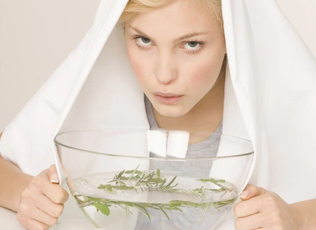 Sprawdź, czy para nie jest zbyt gorąca, aby się nie poparzyć. Pochyl się nad naczyniem, przykryj szczelnie głowę ręcznikiem. Wdychaj opary spokojnie i głęboko nosem, przez 10-15 min. Podobną inhalację możesz przygotować sobie na bazie olejków eterycznych, np. sosnowego, tymiankowego,
