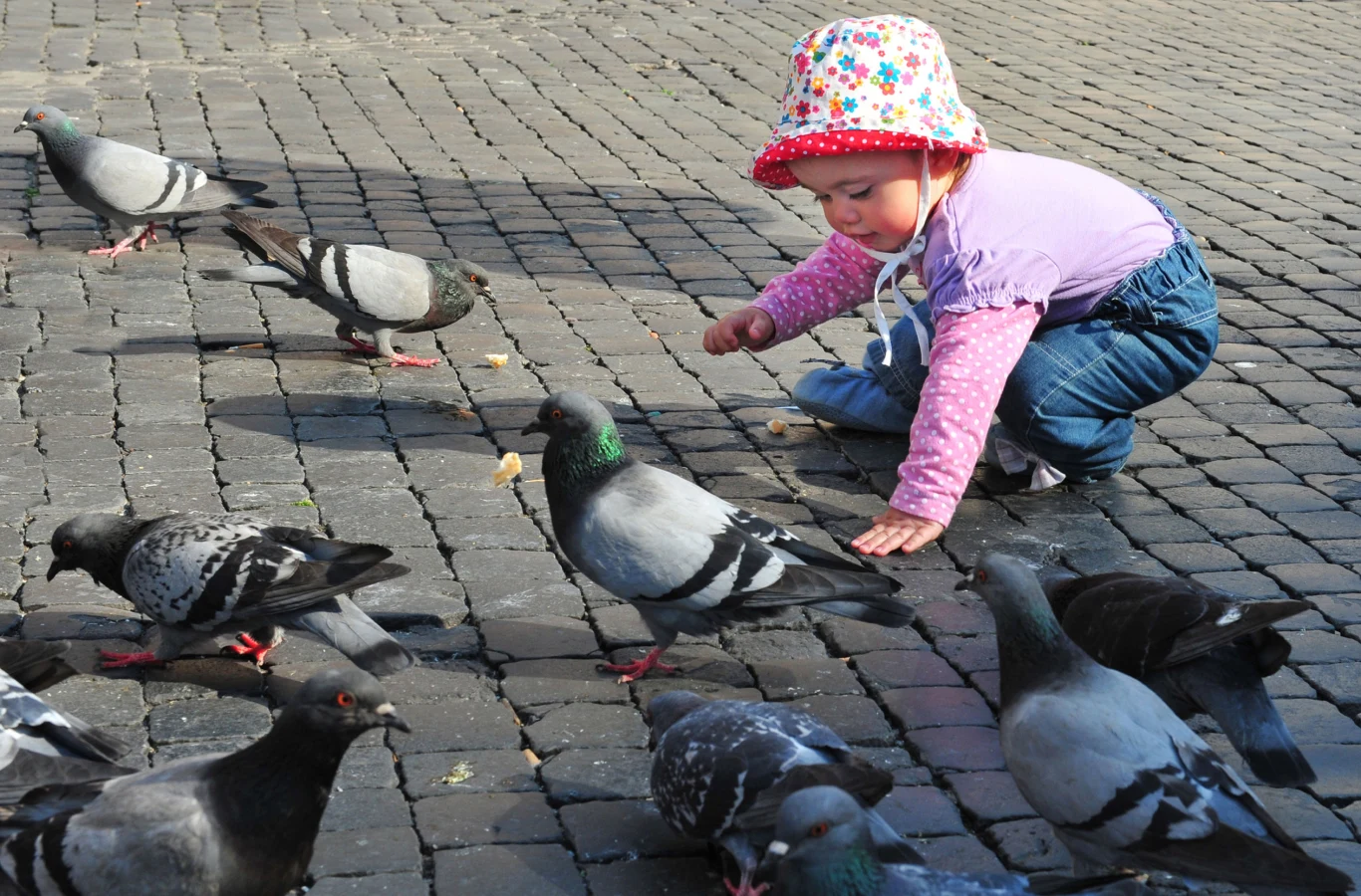 Piękny z pozoru obrazek - dziecko dokarmiające gołębie na rynku. Sielanka i radość. Jednak ta może przerodzić się w tragedię.