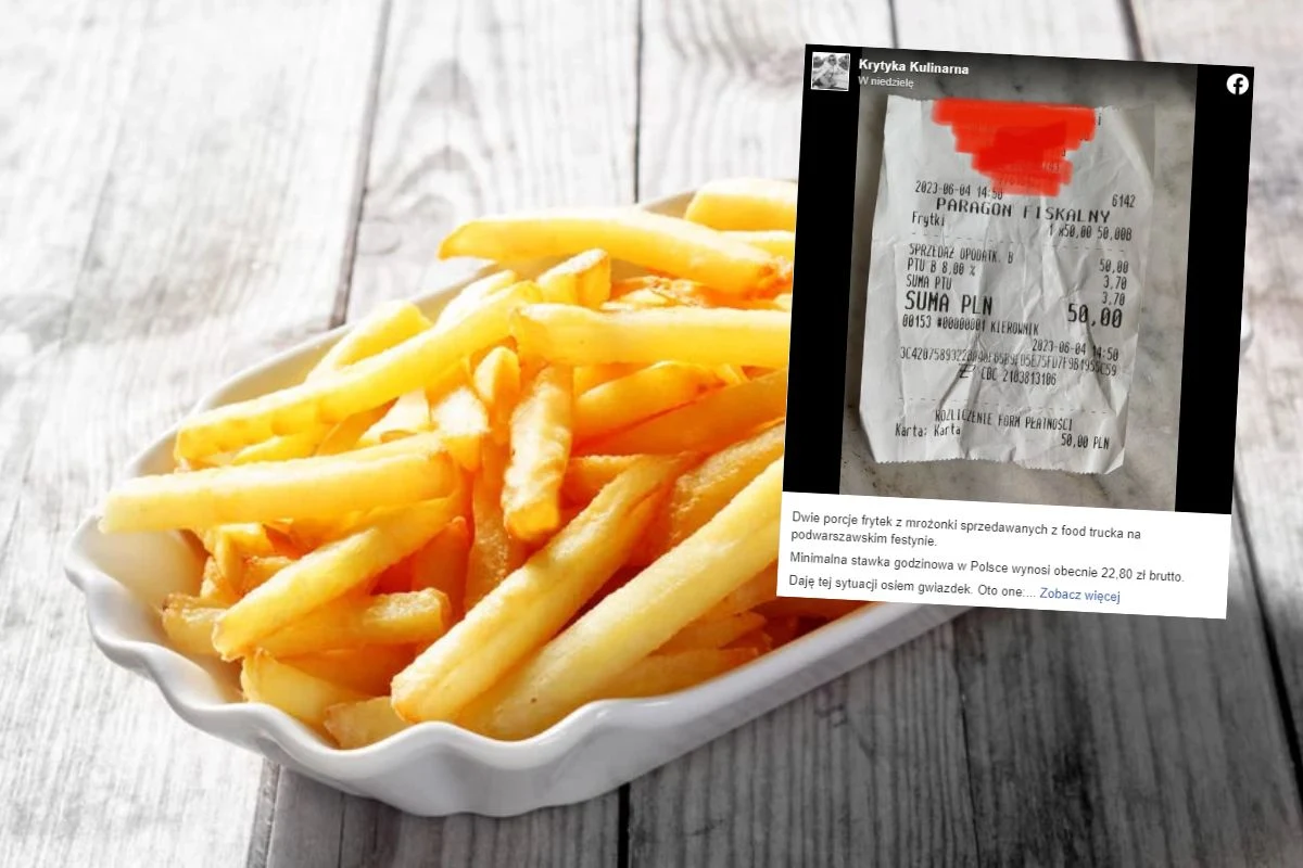 Autorka bloga Krytyka Kulinarna zamieściła na swoim facebookowym profilu post ze zdjęciem paragonu za frytki. Przekąskę, bo ciężko nazwać daniem porcję frytek, którą dostała, kupiła w food trucku na jednym z podwarszawskich festynów. Za swoje zamówienie zapłaciła całe 50 złotych. Dodała również, że były to “frytki z mrożonki".