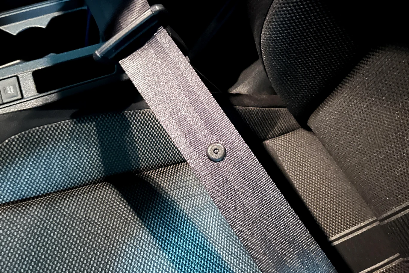 Łatwo więc przeoczyć niewielki detal - plastikowy guzik umieszczony na taśmie pasa bezpieczeństwa, tuż obok metalowej klamry. Jego obecność nie jest przypadkowa.