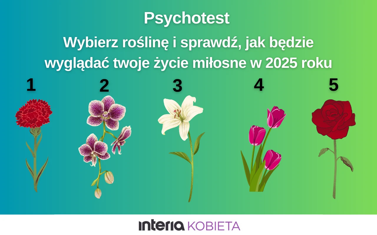 Nowy rok jest symbolem początków, rozwoju i zmian. Sprawdź więc, co oznaczają twoje świadome lub podświadome wybory. Spójrz na obrazek, który przedstawia 5 kwiatów: goździki, orchidee, lilie, tulipany i róże. Nie myśl zbyt długo nad odpowiedzią i zaufaj swojej intuicji. Wybrana przez ciebie roślina zdradzi ci, jak będzie układać się twoje życie miłosne w 2025 roku. Powodzenia!