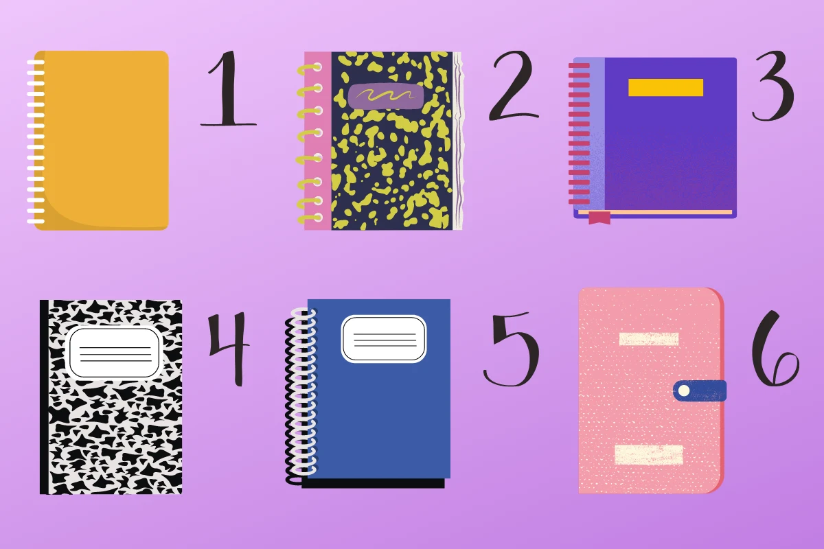 Na przedstawionym obrazku znajduje się sześć różnych notesów. Każdy z nich jest inny i symbolizuje liczne cechy osobowości. Wybierz jeden notes, który jako pierwszy "wpadł ci w oko" i sprawdź, jakie niesie ze sobą znaczenie. Z naszego testu dowiesz się, czy jesteś zorganizowaną osobą.